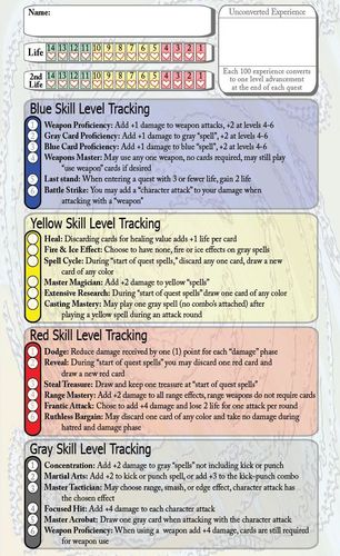 I will also note that the Quest Leader is the one who has to track the creature's life, and again, with no chits, they're doing so on the back of the character sheet. If the creature was not killed, which is very unlikely if the players didn't discard all of their cards during travel, the Quest Leader may choose to go for a second round, essentially rinsing and repeating the aforementioned combat steps. If, at the end of the first round the creature is still alive, the Quest Leader may decide to just dip out and effectively retreat from combat with the party, ending combat.
